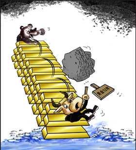 甚至有專家猜測,金價(jià)暴跌的背后主使人有可能是美聯(lián)儲,因其希望通過打壓金價(jià)來維護(hù)美元世界貨幣的低位。宋鴻兵分析認(rèn)為,美國經(jīng)濟(jì)的復(fù)蘇主要是資產(chǎn)價(jià)格的復(fù)蘇,很大程度上須依賴超低利率的寬松政策。而黃金大幅上漲會使全球投資者對通脹預(yù)期發(fā)生變化,從而對利率市場的估值產(chǎn)生誤判,進(jìn)而影響美國的股市和債市,對資產(chǎn)價(jià)格的上揚(yáng)就會產(chǎn)生極大的壓制作用,甚至?xí)拐麄資產(chǎn)價(jià)格的復(fù)蘇出現(xiàn)夭折!敖饍r(jià)上漲,對美經(jīng)濟(jì)以及資產(chǎn)價(jià)格復(fù)蘇會產(chǎn)生沉重打擊,這就是美不喜歡看到金價(jià)上漲的主要原因!