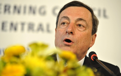 圖為德拉吉在新聞發(fā)布會(huì)上。