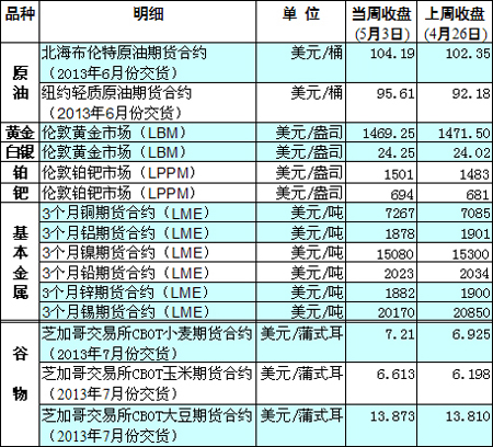 國際大宗商品期貨價格明細(xì)表[2013-05-06]