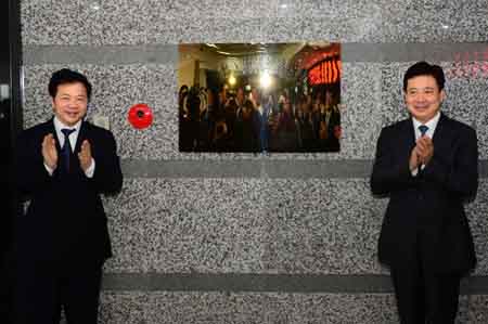 5月8日,山東省委常委、青島市委書記李群(右)和新華社黨組成員、副總編輯慎海雄共同為中國(青島)海洋經濟指數研究院揭牌。 當日,由新華通訊社、山東省政府、青島市政府三方合作成立的新華(青島)國際海洋資訊中心在青島正式啟動運營。該中心旨在通過發(fā)布海洋經濟發(fā)展系列指數等服務,打造中國海洋經濟的“風向標”。