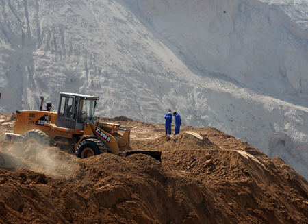 2012年10月,太平洋建設(shè)集團(tuán)與蘭州市政府簽約,投資200多億元,啟動(dòng)蘭州黃河北岸25平方公里移山造地工程,打造“蘭州新城”。按照遠(yuǎn)期規(guī)劃,蘭州市擬在黃河北岸移山造地160平方公里,進(jìn)行城市建設(shè),這塊區(qū)域可容納200萬人口,相當(dāng)于目前城區(qū)總?cè)丝诘?/3。圖為施工機(jī)械在荒山上移山造地。