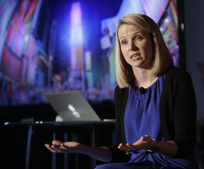 5月20日,美國紐約,雅虎公司首席執(zhí)行官瑪麗薩·邁耶在新聞發(fā)布會上講解收購坦布爾公司的決定。