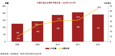 普華永道發(fā)布的《全球并購市場新動向新興市場投資者的崛起》顯示,從2006年開始,更多的收購資金由高速發(fā)展的大型新興市場投資者流向成熟市場;自2008年至2012年五年間,新興市場投資者共向成熟市場投資了約1610億美元,超過了成熟市場向新興市場的投資規(guī)模(約1510億美元)。而在這一波熱潮中,中國企業(yè)海外并購的數(shù)量和金額都在快速增長。