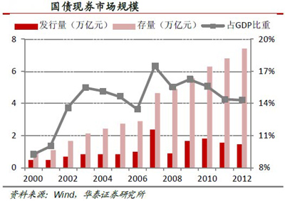 但目前的時(shí)機(jī)與18年前已大為不同。華泰證券的研究顯示,國(guó)債期貨交易的順利開展需要有一個(gè)頗具規(guī)模的國(guó)債現(xiàn)券市場(chǎng)作為支撐。以海外市場(chǎng)為例,在各國(guó)開展國(guó)債期貨交易之初,其國(guó)債存量規(guī)模占GDP的比重均已達(dá)到15%或以上。根據(jù)中債最新的債券托管量統(tǒng)計(jì)數(shù)據(jù),截至2012年底,我國(guó)債券市場(chǎng)的國(guó)債托管規(guī)模已達(dá)7.42萬(wàn)億元,其中記賬式國(guó)債7.07萬(wàn)億元,儲(chǔ)蓄國(guó)債0.35萬(wàn)億元。記賬式國(guó)債存量約占GDP的14%,是1992年國(guó)債存量的將近60倍,國(guó)債現(xiàn)券的存量規(guī)模已達(dá)到了其他國(guó)家開展國(guó)債期貨交易的市場(chǎng)平均水平。