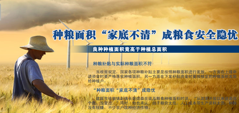“農(nóng)民實際種糧的面積沒有辦法核實清楚。工作量非常大,成本非常高,操作很困難!苯óT市農(nóng)業(yè)局副局長陳旺堯說,“農(nóng)業(yè)部門沿用的是歷史數(shù)據(jù),面積基本上沒有變!