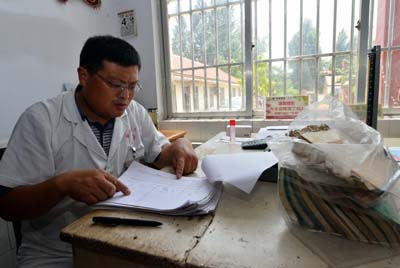 張波今年39歲,多年來一直實行“先看病、后付費”。來這里看病不用帶錢,臨走時記個賬就可以了,不需要抵押證件,也不需要任何手續(xù)。在他的村衛(wèi)生室里,理療不要錢、包扎不要錢,遇到特殊病人,張波還會帶上錢,親自護送病人到大醫(yī)院。17年來,張波賬簿上的賒欠款已達47萬余元,賬本堆起來有厚厚一摞,他卻從沒有追討的打算。