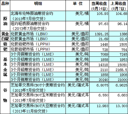 國際大宗商品期貨價格明細表[2013-06-17]