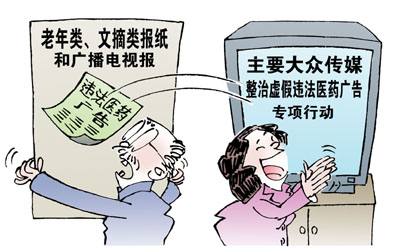 整治虛假違法醫(yī)藥廣告專項(xiàng)行動(dòng)開(kāi)展一個(gè)多月來(lái),主要大眾傳播媒體廣告違法率大幅下降,嚴(yán)重違法醫(yī)藥廣告數(shù)量明顯減少,但老年類、文摘類報(bào)紙和廣播電視報(bào)上刊載的醫(yī)藥廣告違法問(wèn)題依然突出。這是記者日前從國(guó)家工商行政管理總局廣告司了解到的。