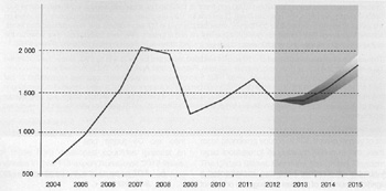 貿(mào)發(fā)會議預計,2013年直接投資仍將接近2012年的水平,上限為1.45萬億美元。隨著宏觀經(jīng)濟狀況改善以及投資者在中期恢復信心,跨國公司可能會將其創(chuàng)紀錄的現(xiàn)金持有量轉(zhuǎn)化為新的投資。之后,外國直接投資流量可能會在2014年攀升至1.6萬億美元,在2015年達到1.8萬億美元。
