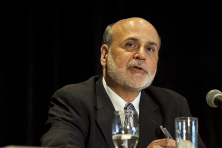 圖為美聯(lián)儲(chǔ)主席伯南克當(dāng)日在位于馬薩諸塞州劍橋市的美國(guó)國(guó)家經(jīng)濟(jì)研究局發(fā)表講話。
