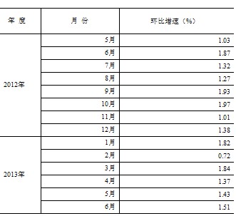 根據(jù)季節(jié)調(diào)整模型自動修正程序,對2012年5月份以來的固定資產(chǎn)投資(不含農(nóng)戶)環(huán)比增速進行修訂。修訂結(jié)果及2013年6月份環(huán)比數(shù)據(jù)如下: