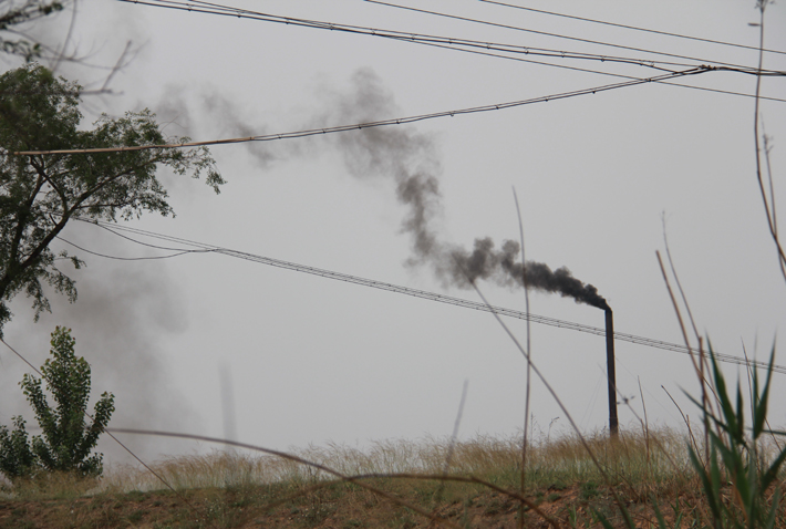 從廠門口往里看,露天工地上正揚起滾滾灰塵,車間里還不時有黃煙排出;向空中遠遠望去,高爐里不斷冒出一股股黑煙,在大風(fēng)的作用下飄散升騰,不斷向下風(fēng)向的村莊里移動,空氣中可以聞到淡淡的鐵銹味。