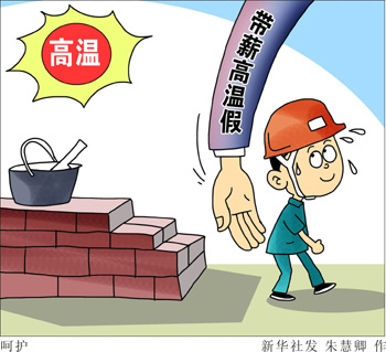 “公司7月30日起就給120多位員工放了7天的‘高溫帶薪假’,不用來(lái)上班,每天還可以拿100元的高溫補(bǔ)貼!闭憬贾菪缕瘘c(diǎn)服飾有限公司總經(jīng)理王新告訴《經(jīng)濟(jì)參考報(bào)》記者。