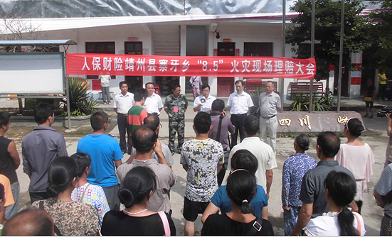 8月9日上午懷化靖州縣召開火災(zāi)理賠現(xiàn)場(chǎng)會(huì)議,為在“8·5”