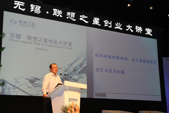 聯(lián)想控股公司董事長(zhǎng)柳傳志在“無(wú)錫·聯(lián)想之星創(chuàng)業(yè)大講堂”上演講。資料照片 |