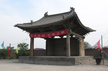 魏村牛王廟元代戲臺(tái)位于魏村鎮(zhèn)魏村。戲臺(tái)建于元初至元二十年(1283年)。戲臺(tái)平面呈正方形,寬7.55米,臺(tái)基高1.4米,為典型的單檐歇山頂建筑。4角立柱,前2根為抹角石雕。臺(tái)周3面敞廊,無前后臺(tái)之分。頂部為精構(gòu)巧架的藻井,整個(gè)建筑精巧別致,古樸典雅,是我國現(xiàn)存最久遠(yuǎn)的戲臺(tái)建筑。
