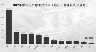 據(jù)統(tǒng)計,截至2012年底,中國對外直接投資累計凈額(存量)達(dá)5319.4億美元,位居全球第13位。