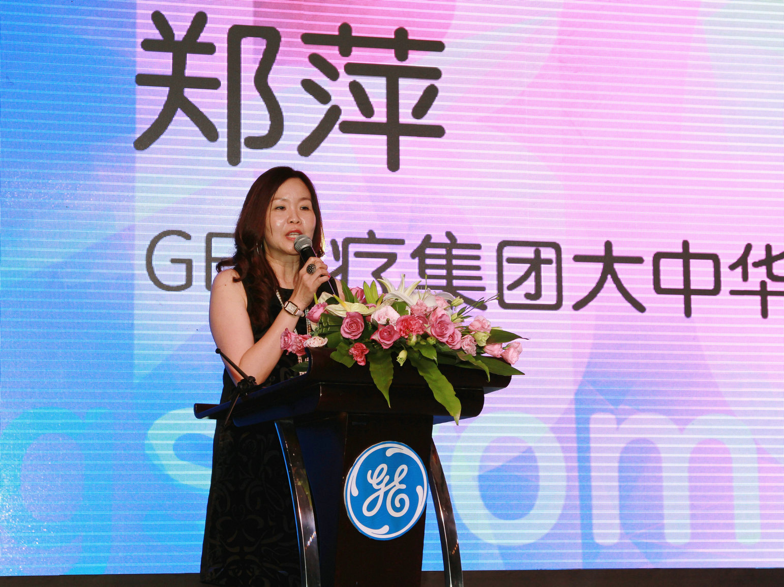 GE醫(yī)療集團(tuán)大中華區(qū)副總裁兼臨床系統(tǒng)部總經(jīng)理鄭萍在發(fā)布會(huì)上致辭。