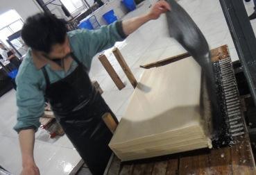 鉛山連四紙產(chǎn)地分布在武夷山脈南、北麓,鼎盛時(shí)期有紙槽兩千余張!捌埐灰椎,措手七十二”,連四紙的制作工藝程序十分考究。原料要用毛竹的嫩竹竿,在立夏前后嫩竹將要長(zhǎng)出兩對(duì)芽葉的時(shí)候砍伐取用。紙料需經(jīng)幾個(gè)月的日曬雨淋,使之自然漂白,生產(chǎn)周期長(zhǎng)達(dá)一年。連四紙依靠手工操作制成,無理化指標(biāo),全憑經(jīng)驗(yàn)駕馭。制造過程的技術(shù)關(guān)鍵:一是水質(zhì),凡沖、浸、漂、洗所接觸的水均不能有任何污染,須采用當(dāng)?shù)厝?二是配藥,藥系采用水卵蟲樹制成。