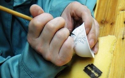 青花繪畫裝飾是一項精細且富于藝術(shù)創(chuàng)造性的工作,對瓷工的技能有著很高的要求。傳統(tǒng)的青花瓷繪技藝分為畫面設(shè)計、過稿、勾線、分水等幾個步驟。