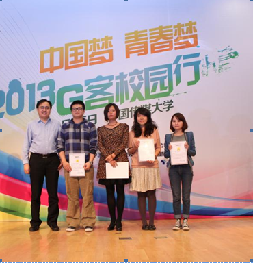 9月25日,“中國夢 青春夢——2013G客G拍原創(chuàng)視頻大賽”北京站校園活動,在中國傳媒大學正式啟動,這也是本年度G客G拍原創(chuàng)視頻大賽的重點活動之一。中國移動2013G客G拍原創(chuàng)視頻大賽分為六大板塊:作品征集、G客G拍校園行、新媒體展映、手機院線發(fā)行、作品評選、G客盛典。截止到11月15日之前,感興趣的觀眾均可以通過互聯(lián)網(wǎng)(大賽官網(wǎng)www.gkgp.com)或新浪微博(官微:G客G拍)上傳作品,參與比賽。