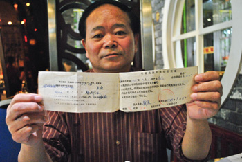 銀行存單上的承諾是盛忠奎夫妻的定心丸,這24年來他們從未懷疑到了2013年9月21日是否能夠從銀行取回約定的22萬元。存款到期的第二天,盛忠奎帶著兩張已經(jīng)發(fā)黃的油印存單去銀行,當(dāng)年的迎賓路分理處已不見蹤影。在建行丹江口支行,一位魏姓負(fù)責(zé)人卻告訴他,這兩張存單早已經(jīng)失效,只能兌現(xiàn)8400元。