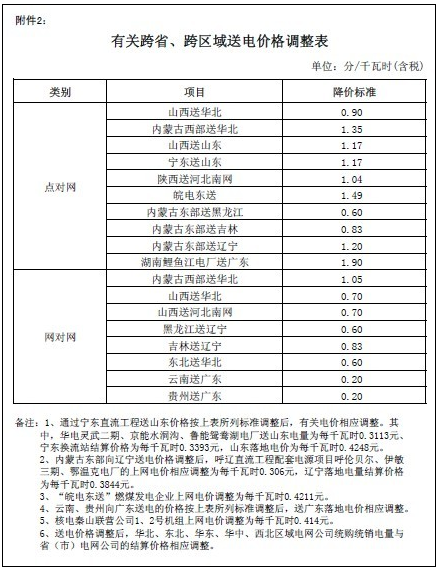 二、適當降低跨省、跨區(qū)域送電價格標準,具體降價標準見附件2。