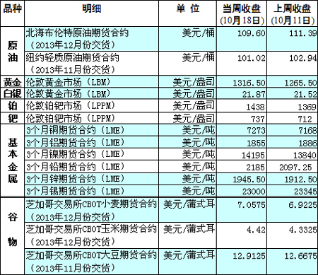 國際大宗商品期貨價格明細(xì)表[2013-10-21]