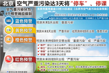 值得關(guān)注的是,今后北京如遇空氣重污染“預(yù)警一級(紅色)”時(shí),將實(shí)施機(jī)動(dòng)車單雙號限行,中小學(xué)、幼兒園停課,有關(guān)企業(yè)停產(chǎn)等措施。