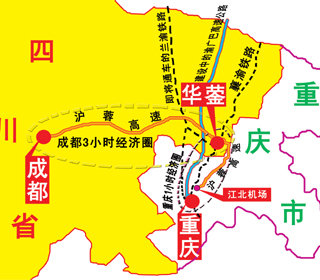 四川省華鎣市位于“紅巖精神”發(fā)源地之一的華鎣山中段西麓,緊鄰重慶,襄渝鐵路縱貫全境,并與蘭渝鐵路在此交匯,滬蓉高速橫穿東西,正在修建的巴廣渝高速縱貫?zāi)媳保┰饺A鎣全境的S203線升格為國道已納入規(guī)劃,是川渝合作的“橋頭堡”,已融入“重慶1小時(shí)經(jīng)濟(jì)圈”、“成都3小時(shí)經(jīng)濟(jì)圈”;是中國優(yōu)秀旅游城市、全國第二批資源枯竭轉(zhuǎn)型試點(diǎn)市、西部最具投資潛力百強(qiáng)縣、四川省首批擴(kuò)權(quán)強(qiáng)縣試點(diǎn)市。