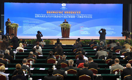 10月27日,世界休閑農(nóng)業(yè)與鄉(xiāng)村旅游城市(城區(qū))聯(lián)盟成立大會(huì)暨第一次峰會(huì)閉幕式在長沙望城千龍湖體育館舉行。為期3天的峰會(huì)聚集了全球五大洲46國駐華使節(jié)、26國城市市長代表,打造了一個(gè)以休閑農(nóng)業(yè)為內(nèi)容,以鄉(xiāng)村旅游為形式的跨國平臺(tái)。