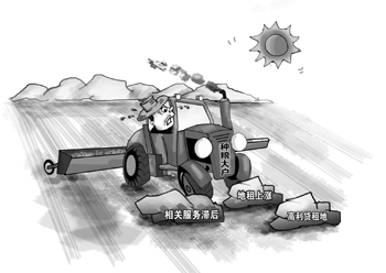 《經濟參考報》記者采訪發(fā)現(xiàn),隨著農村土地流轉的加速,各地種糧大戶不斷涌現(xiàn),但與之相配套的農技推廣、農機服務、病蟲害防治、市場信息、產品營銷等農業(yè)社會化服務發(fā)展相對滯后。社會化服務供給不足,使不少種糧大戶不得不“自操自辦”,甚至患上“大包大攬癥”。
