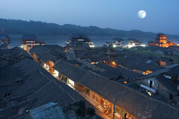 漫步在月光如洗、清涼寂靜的古鎮(zhèn)石板路上,皎潔的月光照著木板的門、屋檐的燈籠、淳樸的人,恍若歷經(jīng)千年的歷史。屋外澹澹的月光寂亮無垠,繾綣在這李莊舊夢里,斑駁與繁華的光影輕舞流轉(zhuǎn)。