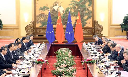 國(guó)務(wù)院總理李克強(qiáng)21日下午在人民大會(huì)堂同歐洲理事會(huì)主席范龍佩、歐盟委員會(huì)主席巴羅佐共同主持第十六次中國(guó)歐盟領(lǐng)導(dǎo)人會(huì)晤。