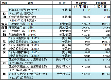 國際大宗商品期貨價格明細(xì)表[2013-11-18]