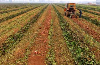 山東鄒平縣孫鎮(zhèn)農(nóng)業(yè)科技種植園的工人在田間收獲紅薯。該種植園流轉(zhuǎn)了附近農(nóng)村的一千畝耕地。新華社發(fā)(董乃德 攝) |