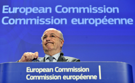 歐盟4日對8家金融機(jī)構(gòu)開出創(chuàng)紀(jì)錄的17億歐元罰單,因?yàn)檫@些金融機(jī)構(gòu)操縱了歐洲銀行間歐元同業(yè)拆借利率和日元東京銀行間同業(yè)拆借利率。其中,德意志銀行因涉嫌操縱這兩種利率被開出最大罰單,為7.25億歐元。圖為歐盟負(fù)責(zé)競爭事務(wù)的委員華金·阿爾穆尼亞在4日的發(fā)布會上發(fā)言。