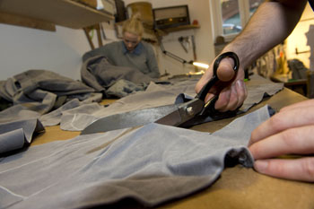 他采用的原材料還包括木匠穿過的藍(lán)色工作褲。這些本可能在焚化爐里一把火燒掉的舊衣服經(jīng)過他的手,總會(huì)搖身一變,成為這座城市中時(shí)尚先鋒人士引以為傲的限量單品。