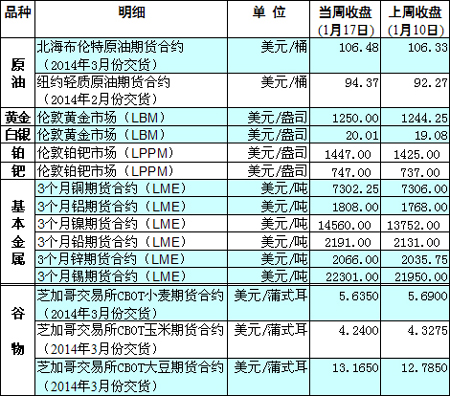 國(guó)際大宗商品期貨價(jià)格明細(xì)表[2014-1-13]