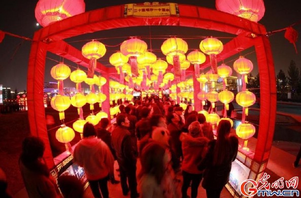 32平方公里的大地上更是一連數(shù)天精彩不斷,輪番上演著賞花燈、猜燈謎,扭秧歌,吃湯圓,賞書畫,舞金獅……