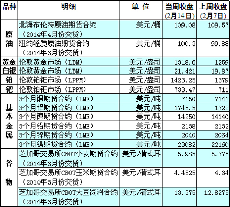 國際大宗商品期貨價格明細表[2014-2-17]