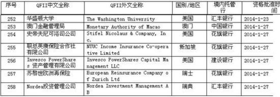 2014年1月份證監(jiān)會(huì)新批QFII信息