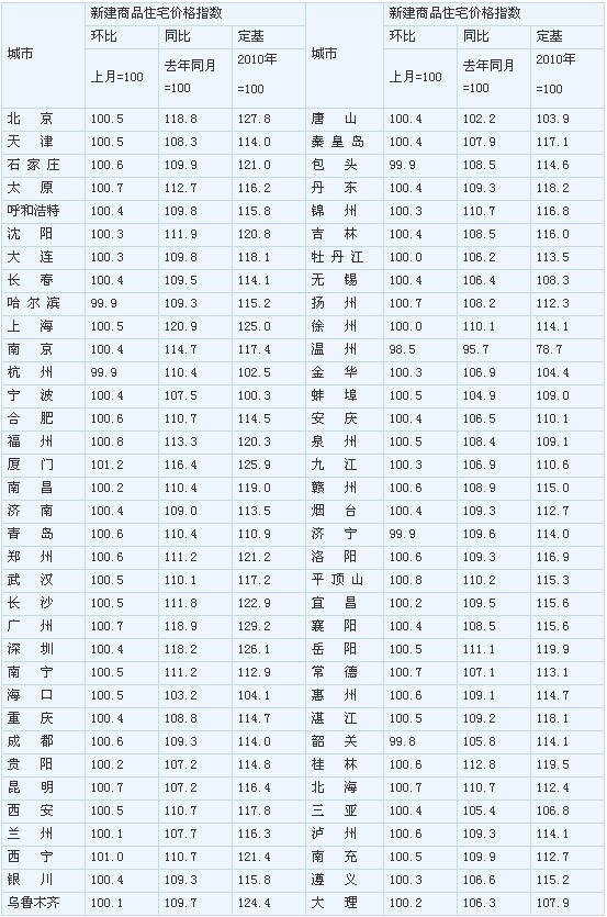 表:2014年1月70個(gè)大中城市新建商品住宅價(jià)格指數(shù)