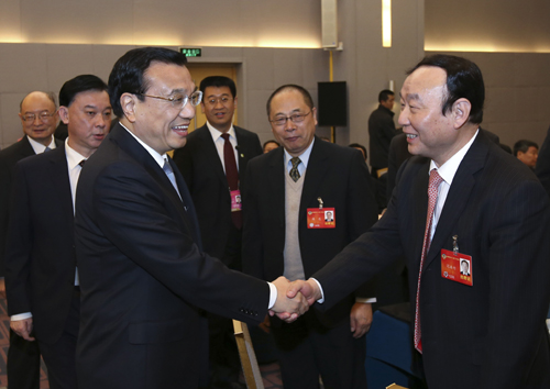 在經(jīng)濟(jì)、農(nóng)業(yè)界委員聯(lián)組會(huì)上,委員們圍繞經(jīng)濟(jì)發(fā)展、深化改革、上海自貿(mào)試驗(yàn)區(qū)、農(nóng)業(yè)現(xiàn)代化等踴躍發(fā)言。李克強(qiáng)與大家深入探討。