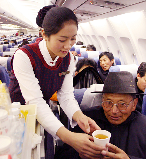 為促進西藏民航事業(yè)發(fā)展,國航成立了自治區(qū)首家基地航空運輸企業(yè)—國航西藏分公司,招收了中國民航首批藏族女乘務員和藏族大學本科飛行員,在拉薩機場啟用了全球行李查詢系統(tǒng)。目前,國航每周進出西藏的航班超過140班,年旅客運輸量達97.6萬人次,其中成都—拉薩航線從開航當年的4000人增至45.35萬人次。