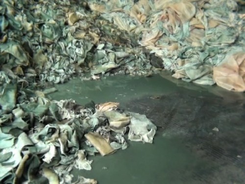 在河北省無極縣,一家制革廠的負(fù)責(zé)人對(duì)記者說:這種垃圾皮料不會(huì)輕易腐爛的,硫化鈉,基本上就是保鮮了。再用上石灰、火堿等工業(yè)原料,放十天二十天的都不會(huì)壞,也不會(huì)生蟲。