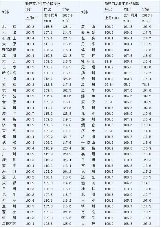 表:2014年2月70個大中城市新建商品住宅價格指數(shù)