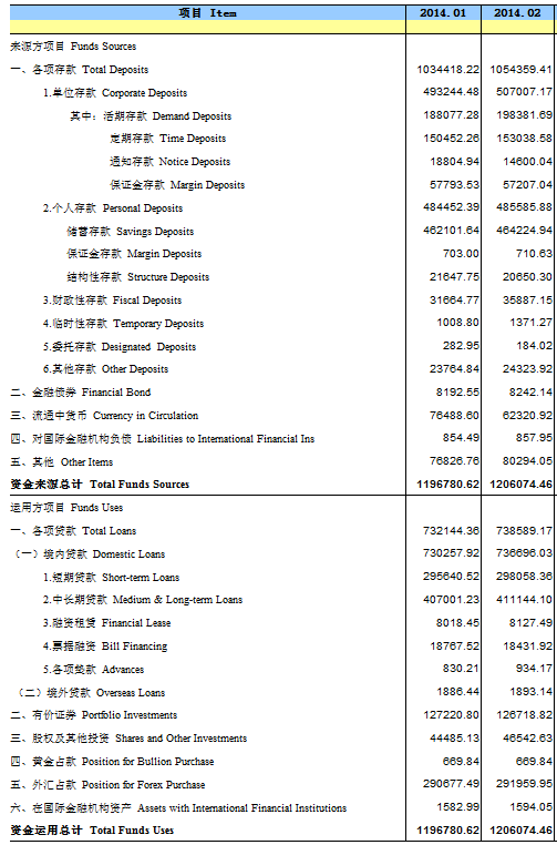 以下為金融機構人民幣信貸收支表