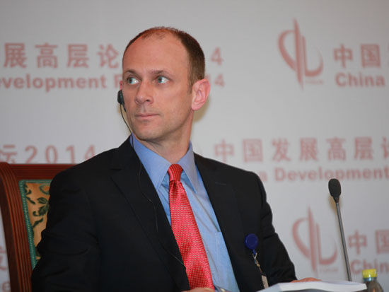 “中國發(fā)展高層論壇2014”于3月22日-24日在釣魚臺舉行。上圖為美國芝加哥大學(xué)教授;美國總統(tǒng)經(jīng)濟顧問委員會前主席奧斯坦-古斯比。