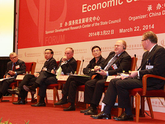 “中國(guó)發(fā)展高層論壇2014”于3月22日-24日在釣魚臺(tái)舉行。上圖為投資環(huán)境與政府職能轉(zhuǎn)變討論。